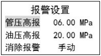 此菜單設(shè)置的是下游管線(xiàn)高壓報(bào)警保護(hù)閾值、上游管線(xiàn)高低壓報(bào)警保護(hù)閾值及消除報(bào)警方式。